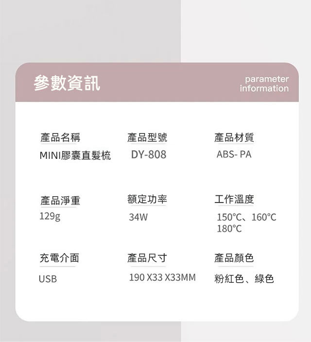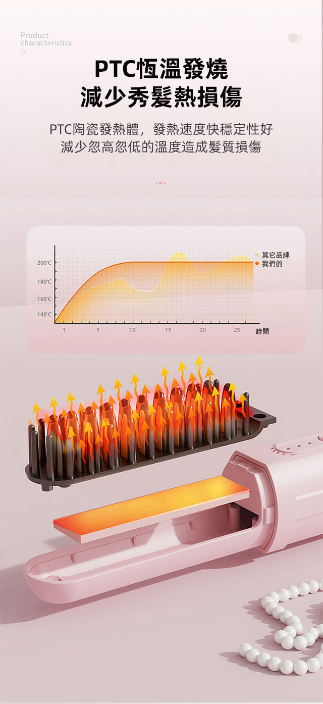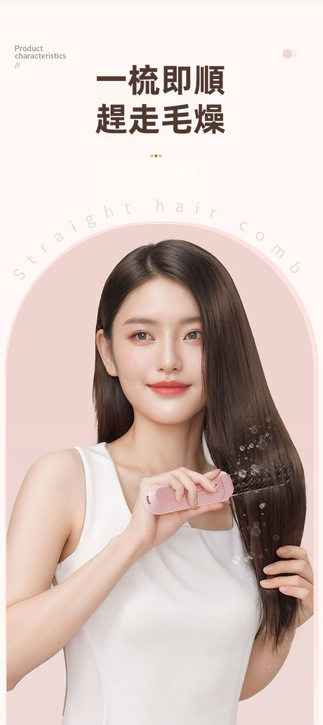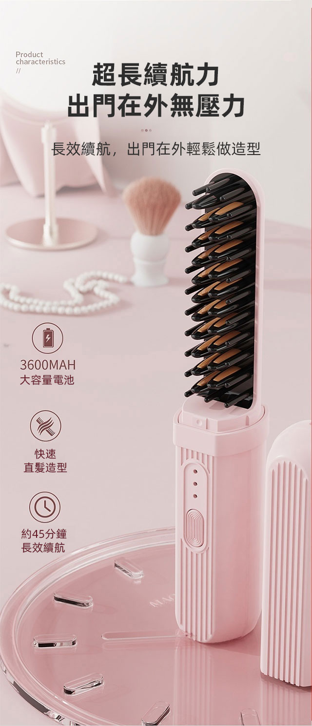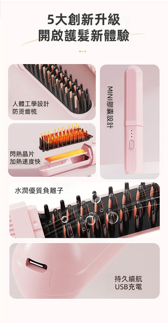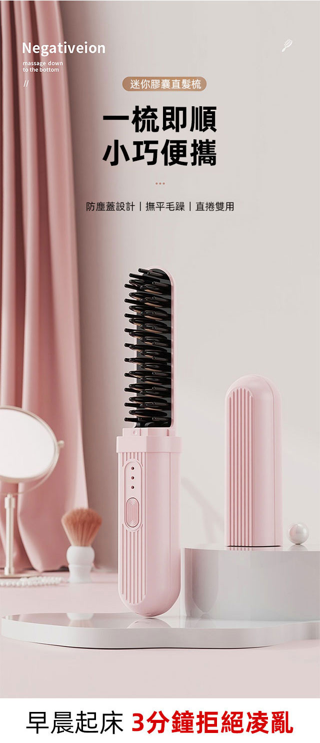 乾濕兩用負離子充電隨身直髮梳