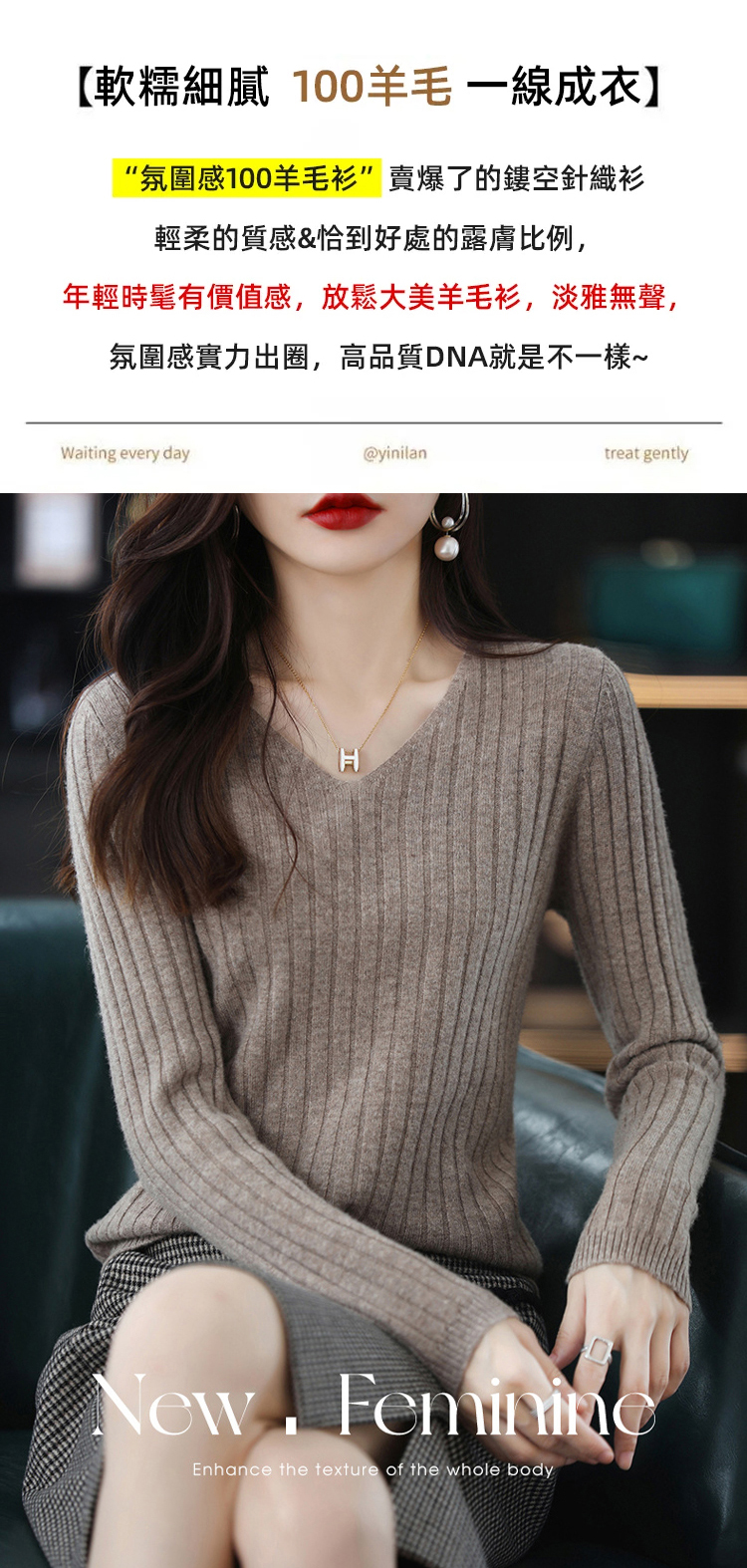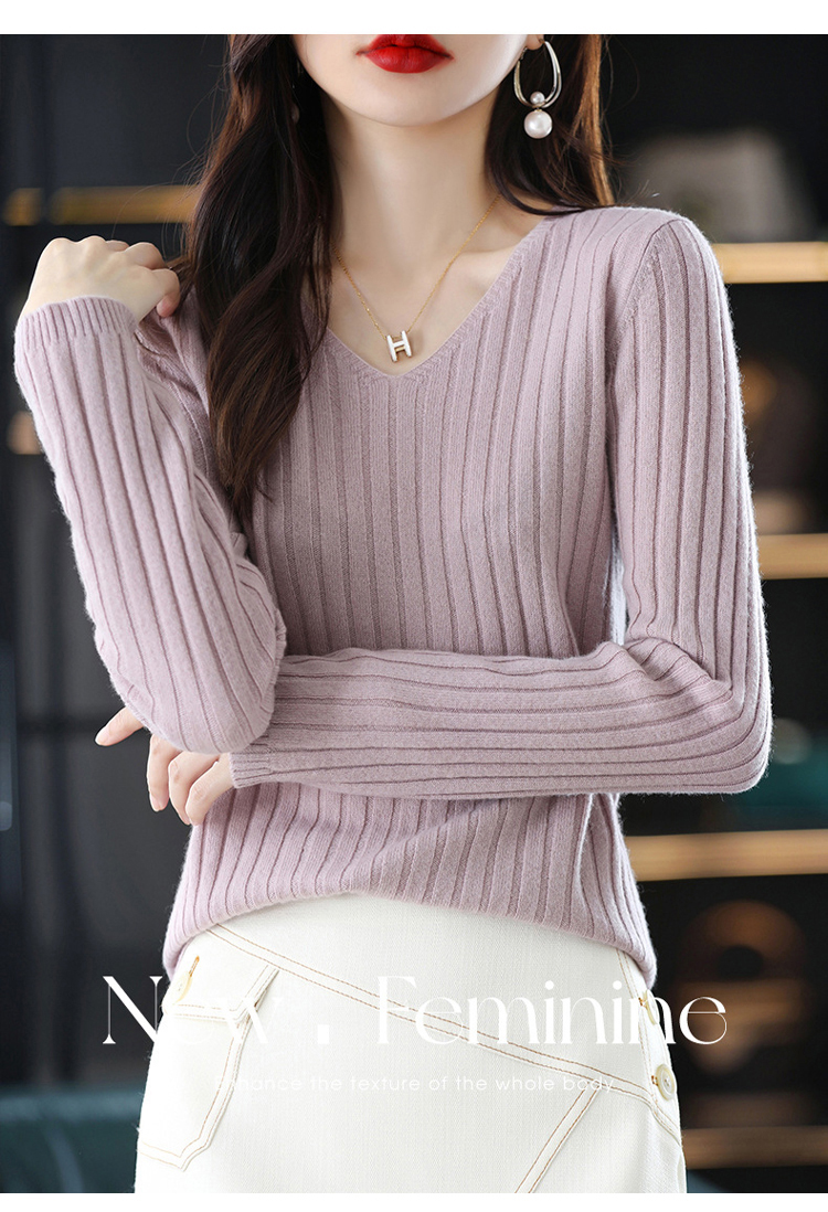 軟糯百搭V領長袖針織打底衫女