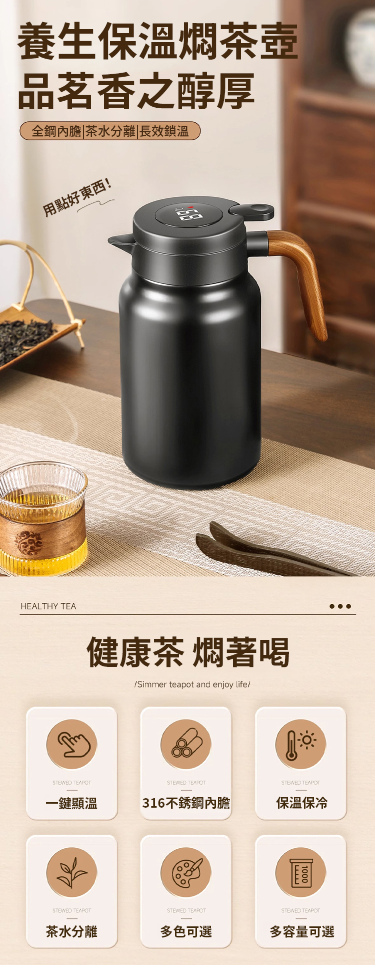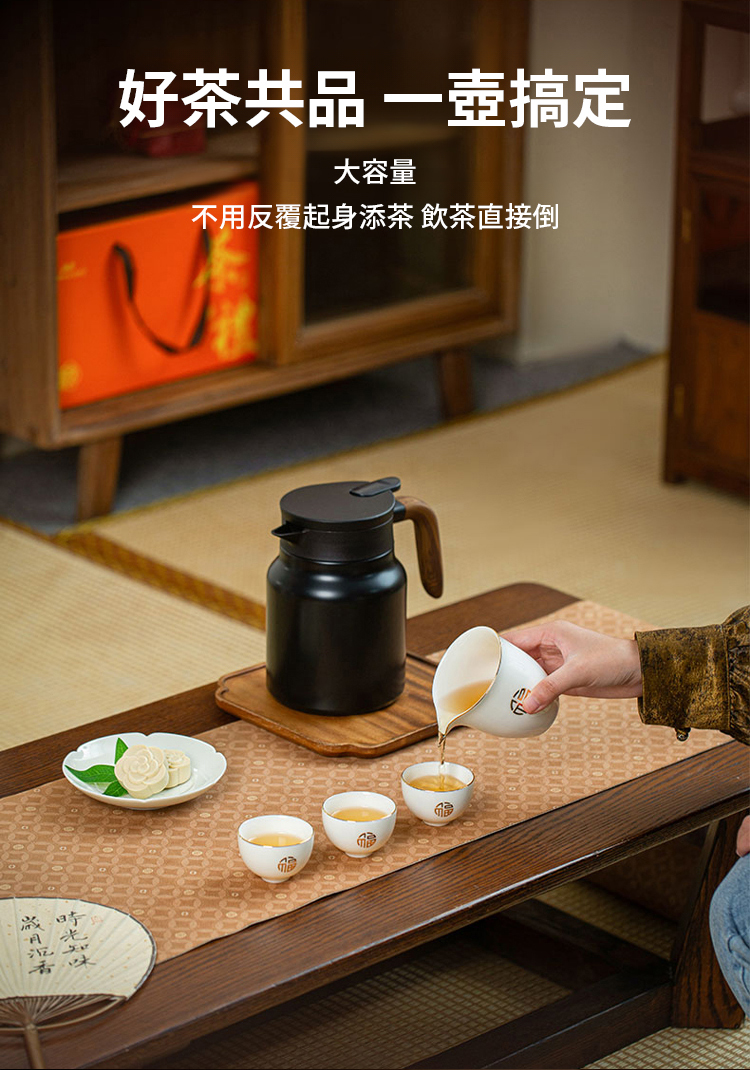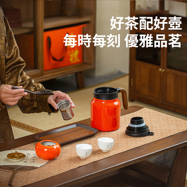 新款木紋柄大容量茶水分離燜茶壺